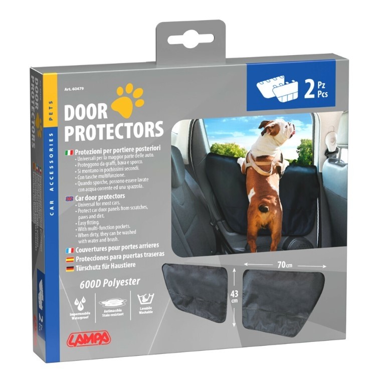 PROTEZIONE PORTIERE POSTERIORI PER AUTO UNIVERSALI ADATTO ANIMALI LAMPA 60479. colore nero, universali per la maggior parte delle auto, proteggono da graffi, bava e sporco di animali, si montano in pochissimi second, con tasche multifunzione, quando sporche possono essere lavate con acqua corrente ed una spazzola. Per supporto all'acquisto contattare il servizio clienti. Info e Preventivi: infoshop@marinazauto.it - Whatsapp: (+39) 331 1804865