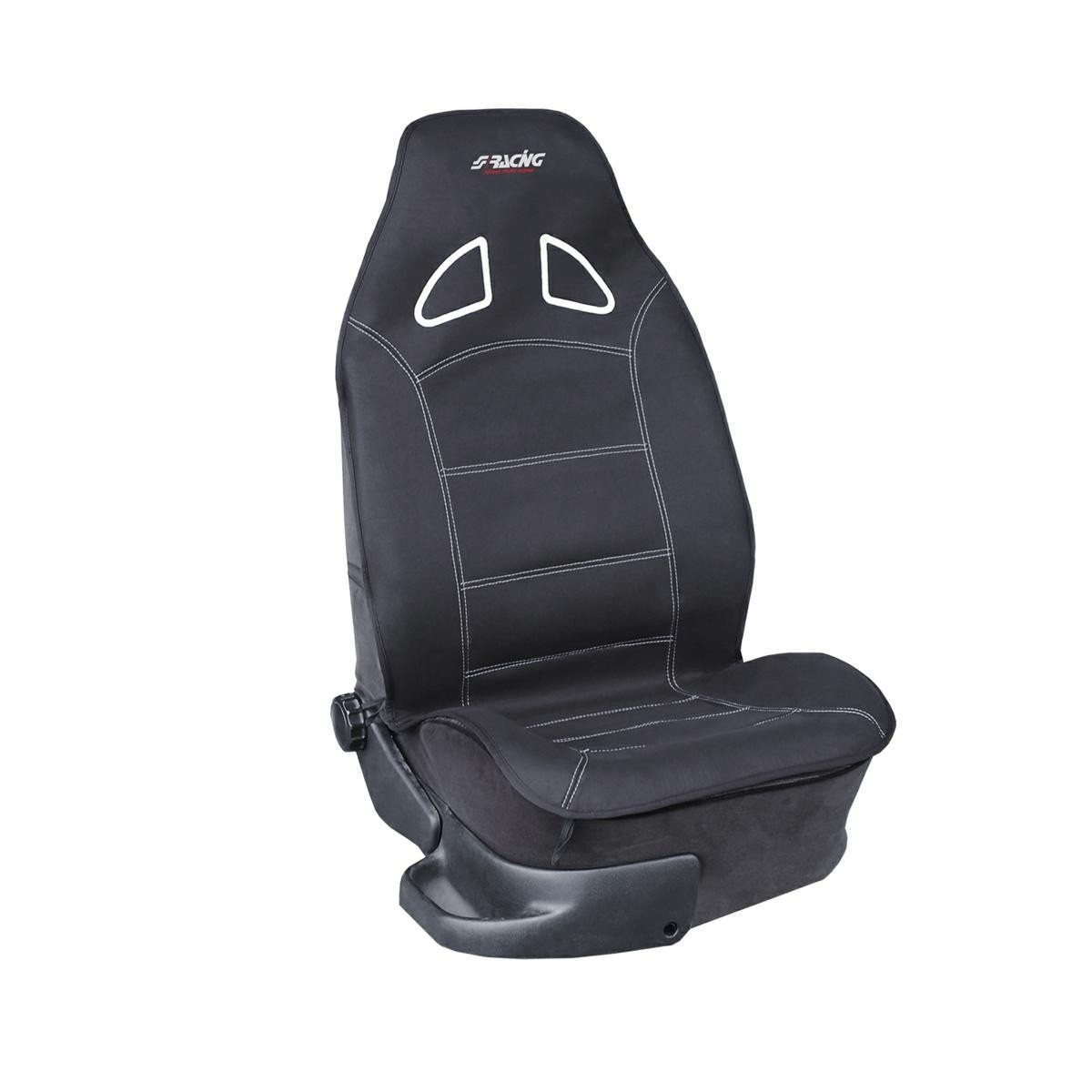 SCHIENALE COPRISEDILE COPERTINA SEDILE RACING NERO SIMONE RACING RSC/1. Anteriore singolo tessuto nero cuciture bianche design sportivo