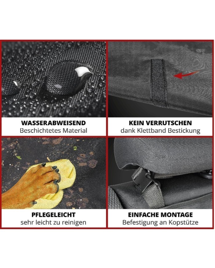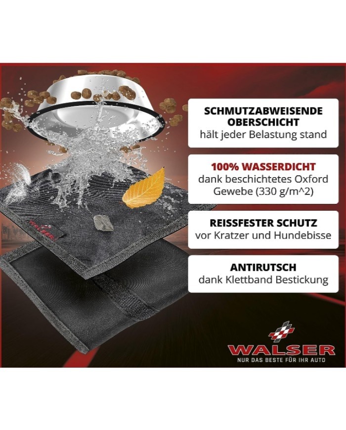 COPRIBAULE CON LATERALE ADATTO ANIMALI GEV 6573. Tappetino di protezione per il bagagliaio dell'auto di alta qualità - La copertura per il bagagliaio dell'auto WALSER Caesar, robusta e particolarmente resistente, copre l'intero bagagliaio dell'auto, comprese le pareti laterali e posteriori, offrendo così una protezione ottimale contro ogni tipo di sporco e usura. La copertura per auto è ideale per il trasporto di oggetti ingombranti come le biciclette o come protezione per il bagagliaio del cane - perfetta per i viaggi e il trasporto dei cani. Tappetino universale per cani - La protezione per il bagagliaio del cane (dimensioni: 155 x 100 cm) si adatta a molti veicoli comuni. La protezione per il bagagliaio dell'auto offre al vostro amico a quattro zampe una superficie morbida su cui sdraiarsi e allo stesso tempo protegge gli interni del veicolo da graffi, zampe sporche e peli di cane. Soprattutto quando il cane entra, la protezione della soglia di carico impedisce la formazione di graffi antiestetici sul veicolo. Protezione per cani di alta qualità - Il versatile tappetino di protezione per il bagagliaio dell'auto è realizzato al 100% in poliestere. Lo strato superiore del resistente tappetino di protezione per cani è realizzato in tessuto Oxford in PVC impermeabile e resistente (330 g/m^2). Grazie alla parte inferiore antiscivolo, la protezione del bagagliaio per cani rimane saldamente in posizione anche durante il viaggio. Facile installazione della coperta per cani - La coperta per cani WALSER per il bagagliaio dell'auto si fissa ai poggiatesta del sedile posteriore tramite due passanti con una comoda chiusura a scatto. Sui lati della coperta per cani sono presenti diverse pratiche cinghie, che possono essere utilizzate per fissare la coperta per cani in posizione. In questo modo tutto rimane saldamente in posizione durante il viaggio e il bagagliaio è protetto in ogni sua parte. Facile da pulire - Come accessorio premium per auto per cani, la coperta per auto per cani offre la migliore protezione possibile per il bagagliaio, le pareti laterali e il paraurti. Se la protezione per cani per auto di alta qualità dovesse sporcarsi, il tappetino per cani per sedili posteriori può essere facilmente pulito con un panno umido. Il tappetino di protezione per il bagagliaio è di nuovo pronto all'uso in pochissimo tempo.