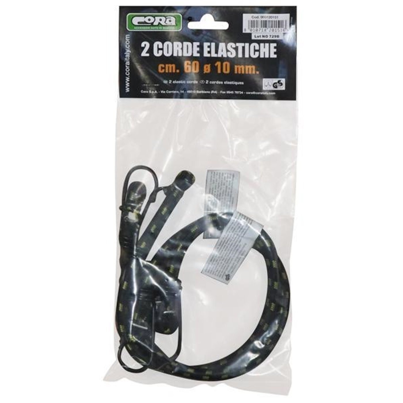 ELASTICI FERMABAGALI PZ. 2 DIAM. 10 CM.60 CORA 120151 Coppia elastici fermabagagli certificati TUV-GS. Lunghezza: 60 cm. Diametro: 10 mm. Coppia elastici fermabagagli Lunghezza: 60 cm Diametro: 10 mm Certificati TUV-GS