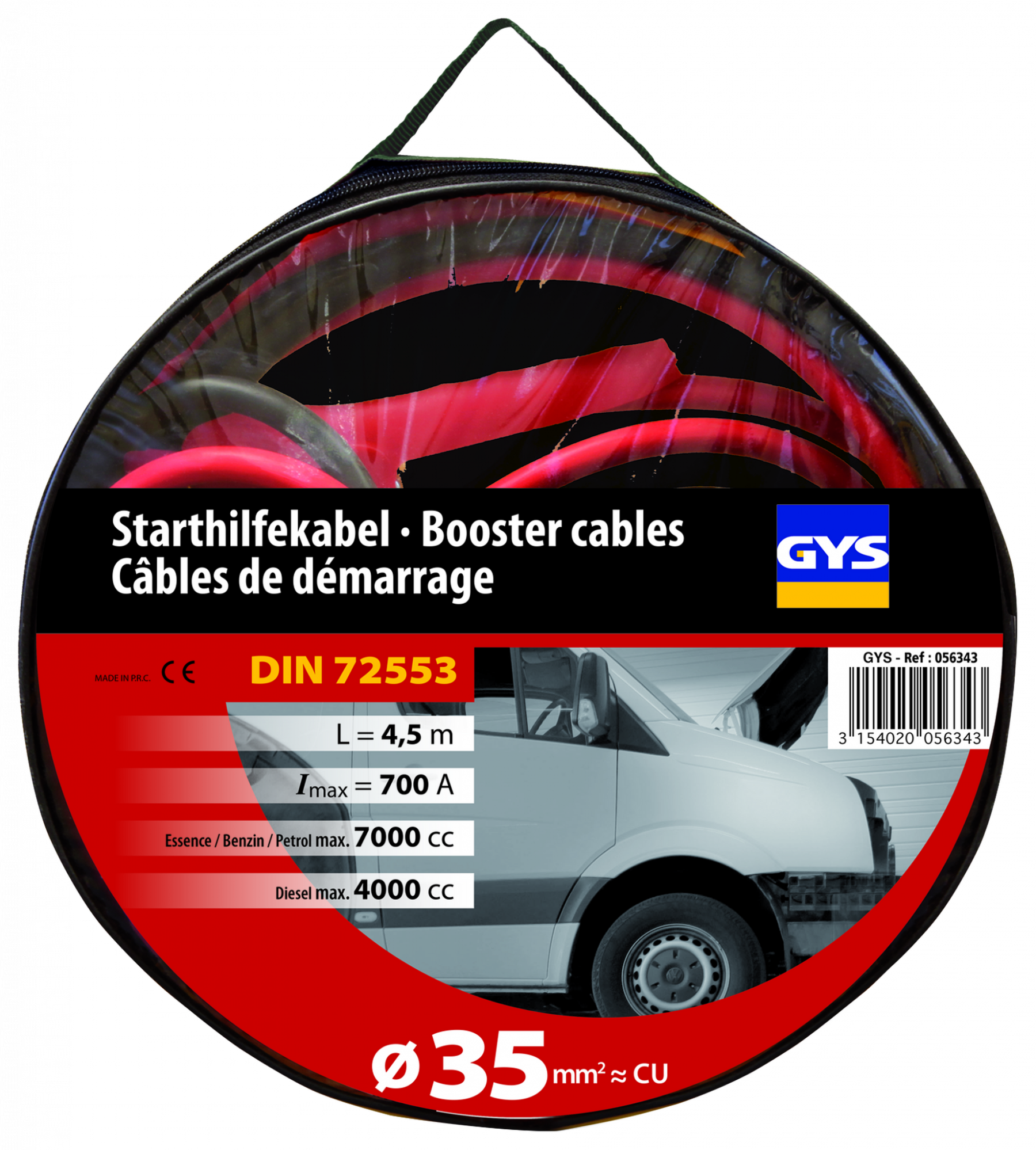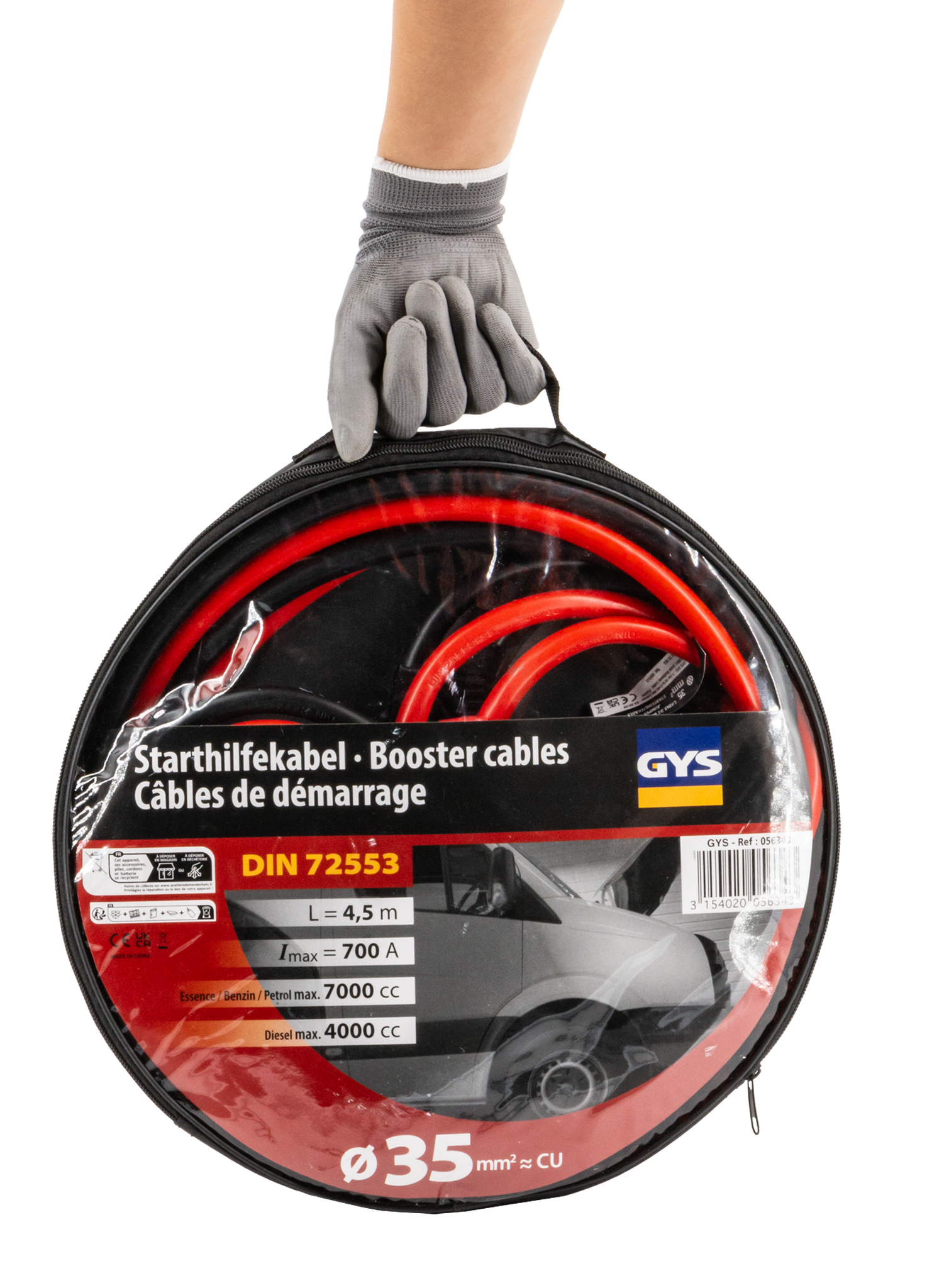 Essenziali per Batterie Difficili: I cavi di avviamento con pinze isolate sono fondamentali per avviare batterie di veicoli con accesso difficile. Avviamento Sicuro: Garantiscano un avviamento in tutta sicurezza. Gamma Completa: La gamma GYS copre intensità di avviamento da 200A a 1000A, adatta per tutti i veicoli a motore. Lunghi e Resistenti: I cavi sono progettati per essere duraturi e resistenti. Praticità di Trasporto: Vengono forniti con una borsa per facilitarne lo stoccaggio e il trasporto. Materiale: Rame; Tipologia di veicolo: Autovetture; Sezione cavo [mm²]: 35; adatto per motore tipo:Diesel, Motore a ciclo Otto; Amperaggio fino a [A]: 700; Lunghezza [m]: 4.5; Articolo complementare / Info integrativa 2: con protezione contro sovratensioni; Numero articolo: 056343; Produttore: GYS; Categoria di prodotto del costruttore: GYS Cavi batteria. GYS Cavetti d'avviamento Cavi Cambio | GAM Technic - GUARANTEED AFTERMARKET Cavetti Auto, Cavi Avviamento Auto, Cavi Batteria Auto, Cavi Avviamento Batteria, Cavetti Batteria, Cavi Caricabatterie: GYS - Cbles Démarrage 700 à - 4, 5 M/ 35 mm² - Pinces Isolées - 056343 GYS Cavi Di Avviamento 056343 GYS Cavi Batteria Con Protezione Contro Sovratensioni, 700A Pinze Isolate Cavi Cavi Auto Batteria GYS Cavi Con Morsetti Booster Avviamento 2 Pz Per Auto Furgoni 320 A 3 Cavetti Batteria Auto Cavo di avviamento 700A - 2 x 4,5 m - diam.35 mm² Modello professionale: Morsetti isolati con cavo in rame Ideale per veicoli leggeri e pesanti di qualsiasi cilindrata.