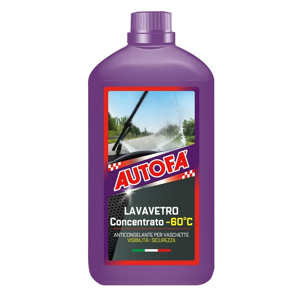LIQUIDO LAVAVETRO ANTICONGELANTE 1 LT AUTOFA' CONCENTRATO - 60°C. ART. 2066. lavaparabrezza lavavetri Nuova formulazione studiata specificamente per evitare il congelamento del liquido all'interno della vaschetta, anche alle più rigide temperature (fino a -60°C). • Se opportunamente diluito, pulisce e sgrassa il parabrezza dell'auto, assicurando un'ottima visibilità anche nelle stagioni meno fredde. • Non aggredisce la gomma, la vernice e le parti in plastica.