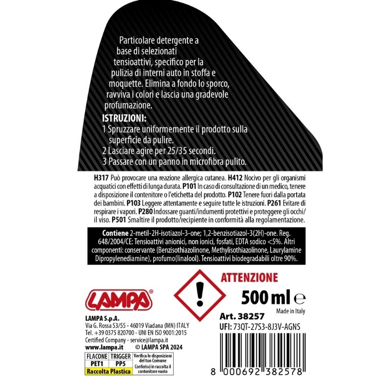 DETERGENTE SPRAY PULITORE INTERNI PER TESSUTI E MOQUETTE GRAN PREE 38257.