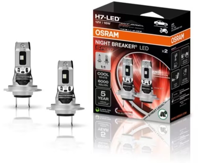 COPPIA DUE LAMPADINE H7 NBR LED SPEED 450 6000K OSRAM 64210DWNBSP-2HB OMOLOGATE. Come un'alogena - ma con l'anima LED delle NIGHT BREAKER. Facile e veloce. Con OSRAM NIGHT BREAKER LED SPEED H7, omologate per uso su strada1). Veloce da installare, facile da montare, con la più recente e innovativa tecnologia OSRAM all'interno e un design 1:1 all'esterno. NIGHT BREAKER LED SPEED H7 non solo combina la compatibilità meccanica e l'elettronica innovativa con un design 1:1 identico a quello delle lampade tradizionali, ma anche tutte le caratteristiche e i vantaggi avanzati delle lampade LED OSRAM omologate per uso stradale1). Massima velocità e semplicità nell'installazione e nella sostituzione delle lampadine alogene e un upgrade di alta qualità in termini di visibilità grazie alle lampade LED OSRAM omologate per uso stradale. Con le lampade omologate per uso su strada1)NIGHT BREAKER LED SPEED H7 puoi aggiornare le luci anabbaglianti e abbaglianti del tuo veicolo con la più moderna tecnologia LED. Non sono più necessari tappi o adattatori aggiuntivi per installare la lampada. Queste lampade sostitutive a LED sono adatte a sostituire le lampade e gli attacchi tradizionali. Offrono una luce bianca moderna e brillante con una temperatura di colore fino a 6000 Kelvin, un'emissione luminosa stabile anche a bassa tensione e colpiscono per la loro luminosità superiore2) dei valori massimi consentiti fino al 50%2). Rispetto alle lampade standard, come quelle alogene, queste lampade retrofit LED consumano fino al 60% in meno di energia e convincono grazie alla tecnologia LED e alla struttura resistente alle vibrazioni appositamente sviluppata, con una durata fino a 6 volte superiore3). Ora è possibile sostituire le lampade tradizionali del tuo veicolo con le rivoluzionarie lampade retrofit LED OSRAM NIGHT BREAKER e sperimentare una luminosità di tendenza con l'omologazione stradale1). Inoltre, OSRAM offre una garanzia dedicata su tutte le lampade retrofit LED NIGHT BREAKER2).