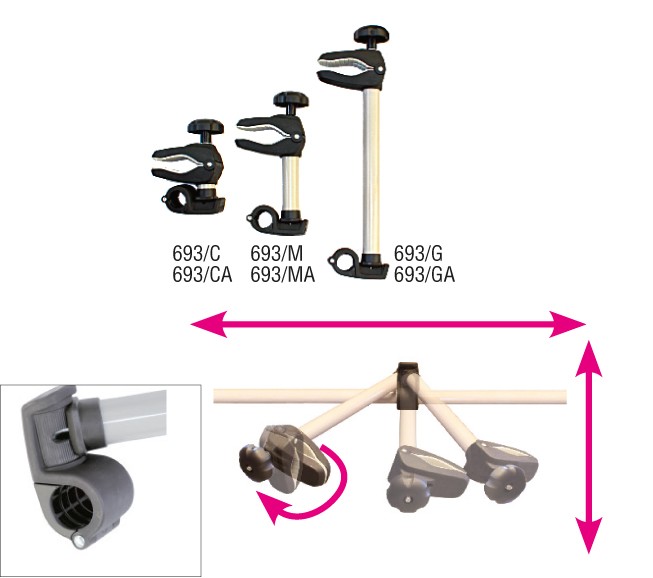 BRACCIO FERMABICI PERUZZO MEDIO 3D ALLUMINIO 693/MA. L' unico braccetto 3D sul mercato che consente il movimento su 3 dimensioni: in alto, in basso e laterale, facilitando così la presa del telaio bici. Braccetto 3D medio per la seconda bici.