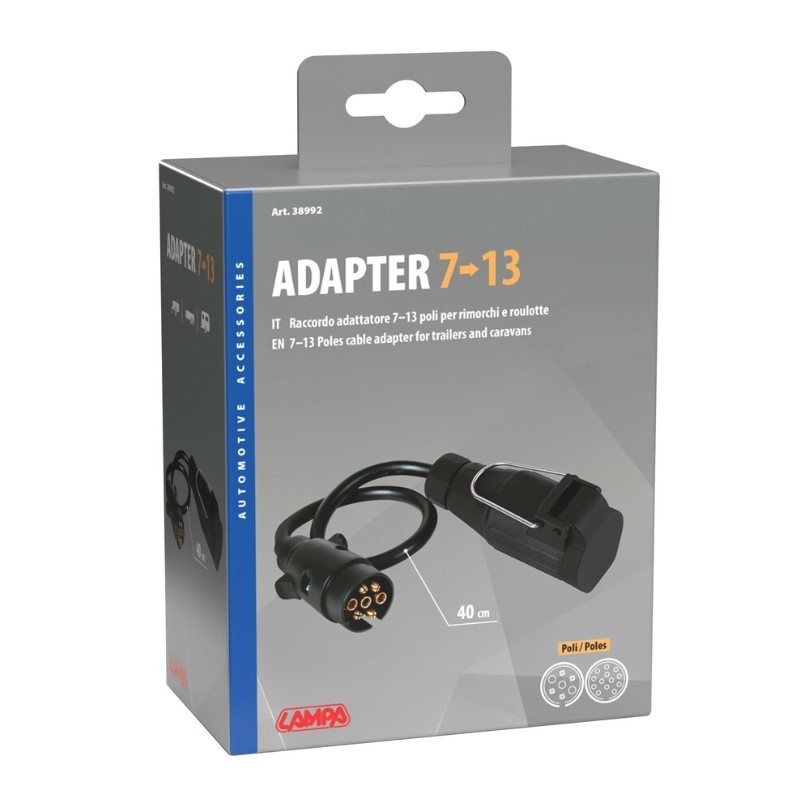 ADATTATORE 7 >13 POLI CON CABLAGGIO DA 40 CM LAMPA 38992. Adattatore 7 poli maschio < > 13 poli femmina con cablaggio da 40 cm.