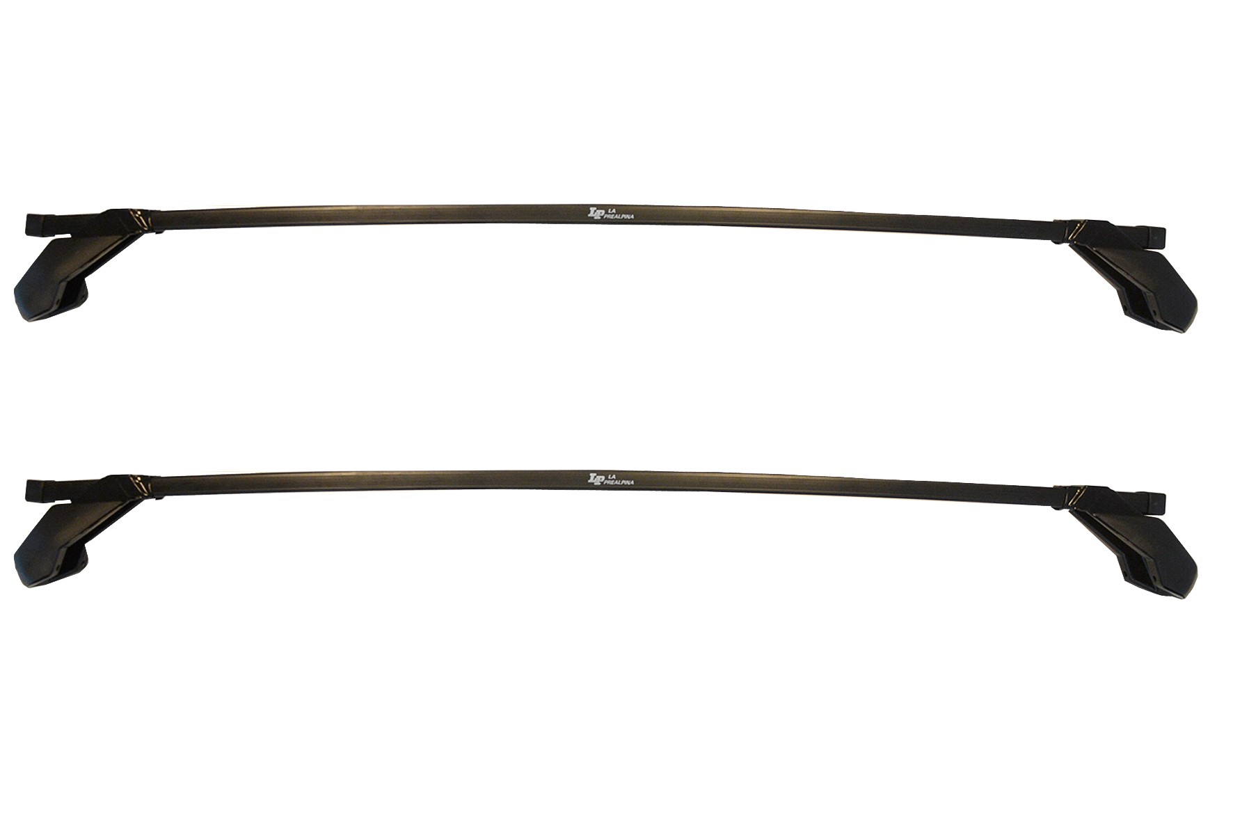 BARRE PORTATUTTO LP64 LUNGHEZZA 110 CM LAPREALPINA 10574. LP 64: portatutto con solida struttura portante in acciaio inguaiato in pvc antiscivolo-antigraffio. Attacchi in lamiera d'acciaio stampata e verniciata con polveri termoindurenti “long life” anticorrosione. Completa di serratura con chiave, specifica per auto con punti fissi (fori) sul tetto o con corrimano integrati. art. 10574