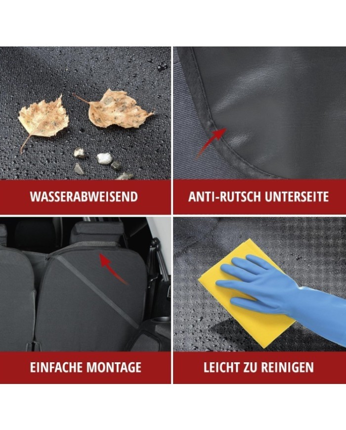 TELO COPRI SEDILE POSTERIORE PER IL TRASPORTO DI ANIMALI GEV 6577. Protezione ottimale: il copristivali WALSER Nero copre l'intera area dei sedili posteriori e protegge dallo sporco e dall'usura Vestibilità universale: la protezione antiscivolo e idrorepellente del bagagliaio è adatta a tutte le marche di veicoli comuni Materiale robusto: La protezione per il bagagliaio - che può essere usata anche come coperta per cani da auto - è fatta di poliestere resistente e può essere usata in molti modi, per esempio per trasportare cani, attrezzi da giardino o altre attrezzature per il tempo libero. Installazione facile: la copertura del bagagliaio può essere installata senza attrezzi in pochi passi. Basta fissare le cinghie di tensione ai sedili o ai poggiatesta. Facile da pulire: Il tappetino del bagagliaio con la parte inferiore antiscivolo può essere pulito rapidamente e facilmente con un panno umido.O COPRI SEDILI POSTERIORE PER IL TRASPORTO DI ANIMALI GEV PROTEGGE E RIPARA I SEDILI POSTERIORI E L'AREA PIEDI, RESISTENTE E DI FACILE MANUTENZIONE. NERO HUNDEDECKE. TRAVEL CONFORT. Per supporto all'acquisto contattare il servizio clienti. Info e Preventivi: infoshop@marinazauto.it - Whatsapp: (+39) 331 1804865